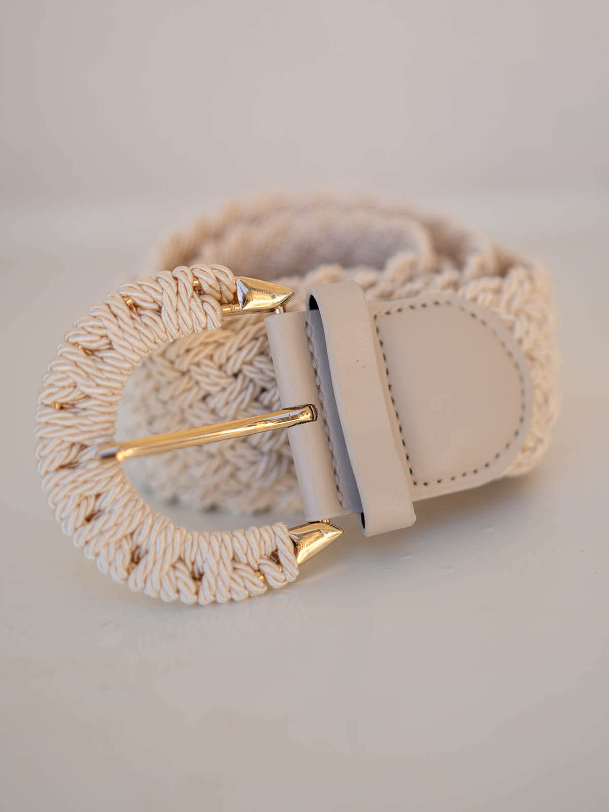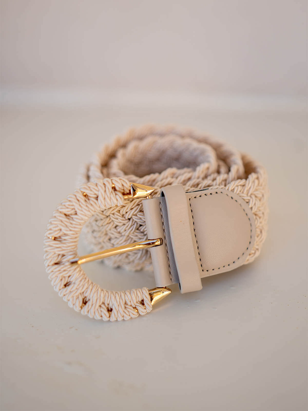 Ελαστική καλοκαιρινή ζώνη με σε μπεζ χρώμα. Μήκος: 110cm